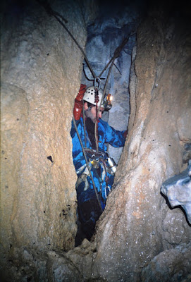 hacia la gran galería y los pozos finales. Atravesamos las diaclasas y